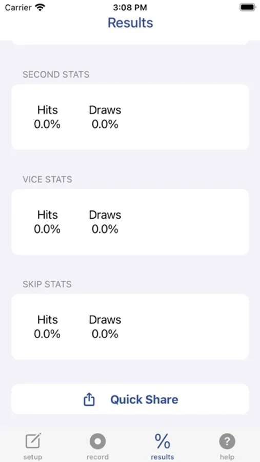 Curling Metrics is as easy as 1-2-3. Enter your team members and basic game information, record your outcomes as the game is played, then check out the results. Results are calculated on the fly, so you can view current stats on the Results tab at any time. Share the data with your team or others easily with the Quick Share feature.