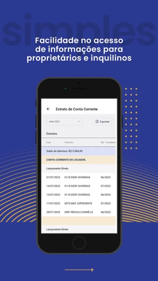 Extrato de Conta Corrente: Tenha acesso ao extrato detalhado da sua conta corrente relacionada à unidade imobiliária. Visualize os pagamentos recebidos, despesas associadas ao imóvel, e mantenha-se informado sobre todas as movimentações financeiras relevantes.
