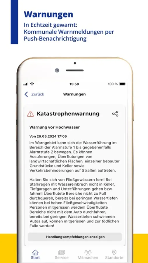 • Push-Mitteilungen bei Warnungen: Seien Sie immer vorbereitet bei Unwetter, Großereignissen oder Baustellen.