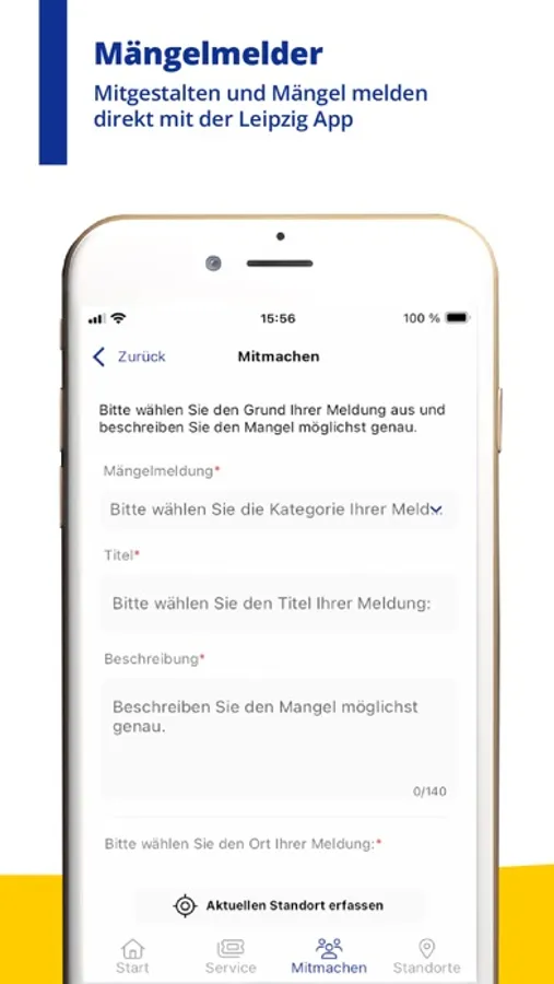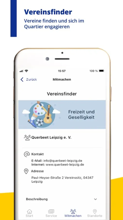 • Mitgestalten: Mängel melden, Vereine finden und aktiv am Stadtleben teilnehmen