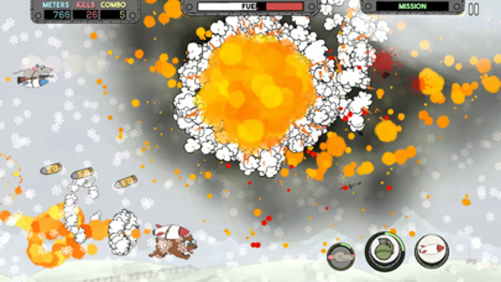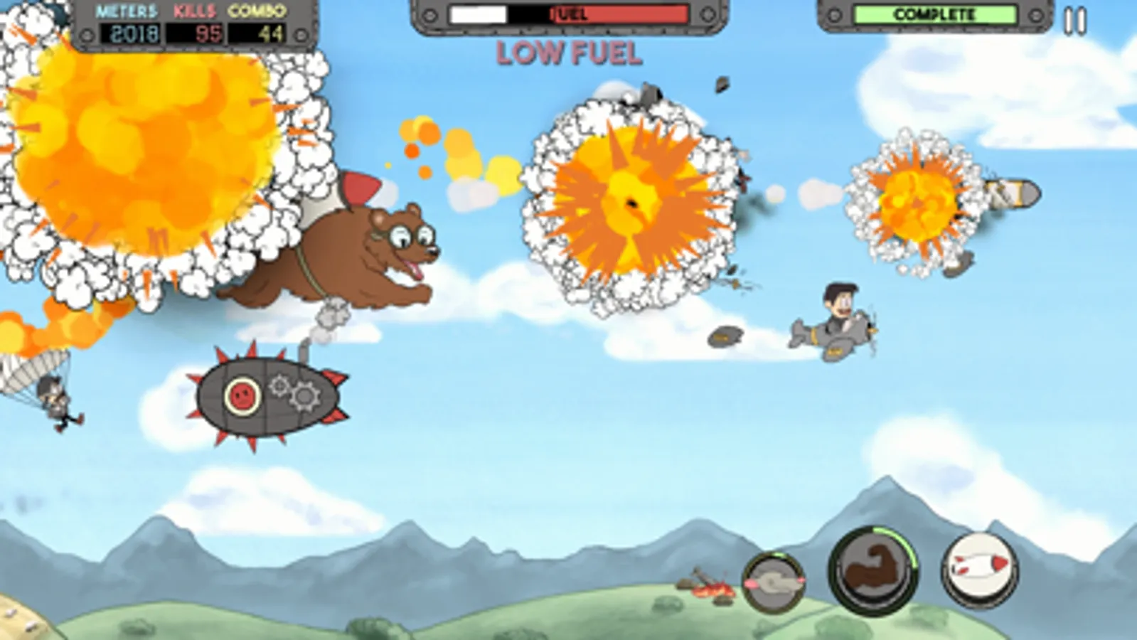 Tackle explosive missions designed to test your skill and creativity. Each one earns XP, helping you level up and enhance your bear’s abilities as you battle through an escalating air war.