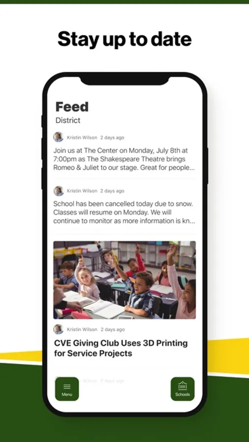 In the Live Feed is where you'll find updates from the administration about what's going on in the district right now. Whether that's celebrating a student's success, or reminding you about an upcoming deadline.