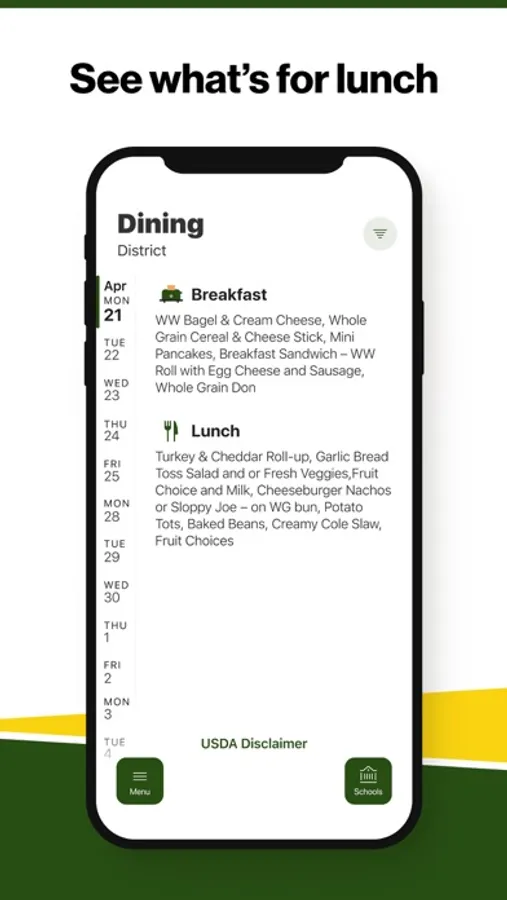 Within the dining section, you'll find an easy to navigate, weekly menu, sorted by day and meal type.