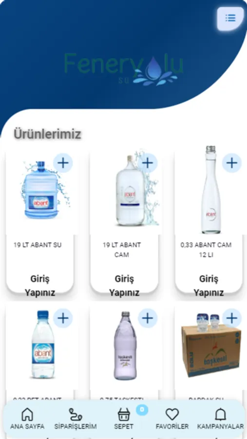Feneryolu Su Mobil Sipariş Uygulaması ile sipariş vermek artık çok kolay! Damacana, Cam Damacana, Pet ve Bardak Su siparişlerinizi uygulamadan verebilir, kredi kartı ve kapıda nakit ile ödeme yapabilirsiniz.