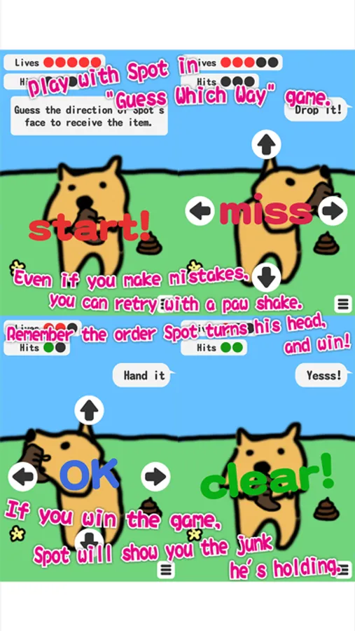 Engage in games with Spot to receive the collected items. Remember the sequence in which Spot turns his head and compete in the 'Guess Which Way' game. When you win, Spot lets go of the item and proudly shows it to you.