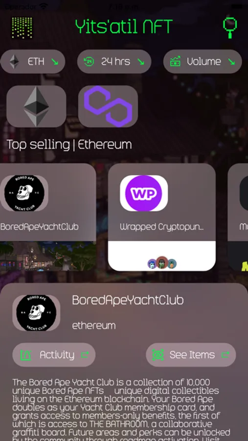 With Yits'atil -meaning ART in Maya- allows to search from the NFT universe included Ethereum and Polygon galleries your next piece, at the same time that you can apply different filters.