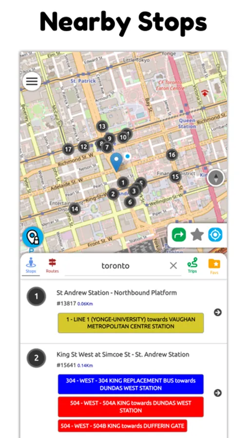Toronto Transit Real Time App Offers Following Features: