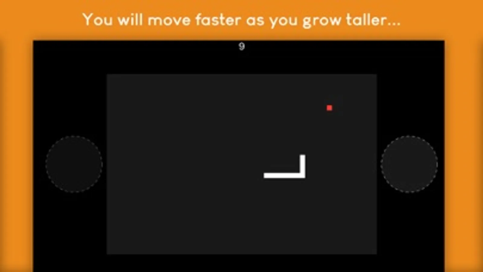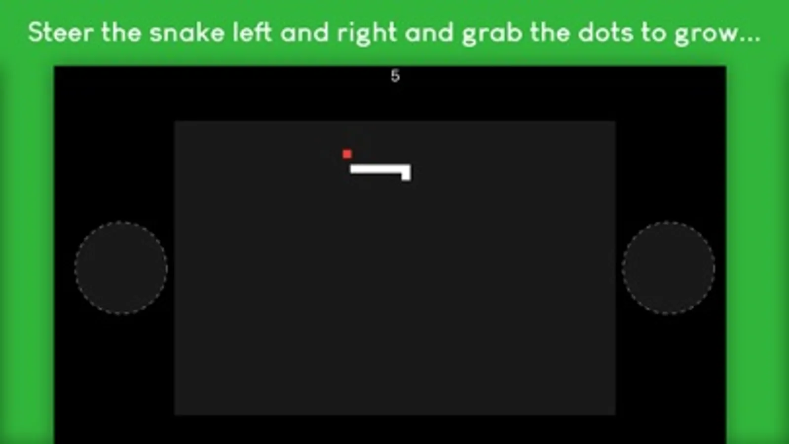 Rotate your direction using the left and right buttons to maneuver around the playing board. Keep yourself from colliding with both the borders of the playing board and your tail, which gets taller as you eat more dots. The longer you last, the faster you will move.