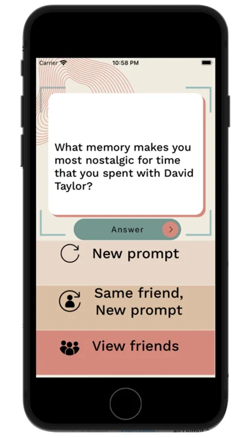 Our Common Ground allows you to select friends from your address book and schedule notifications to receive compelling questions about them that prompt you to share fun memories, meaningful insights, and important events, and then review your answers to reminisce about the relationships that have impacted your life.
