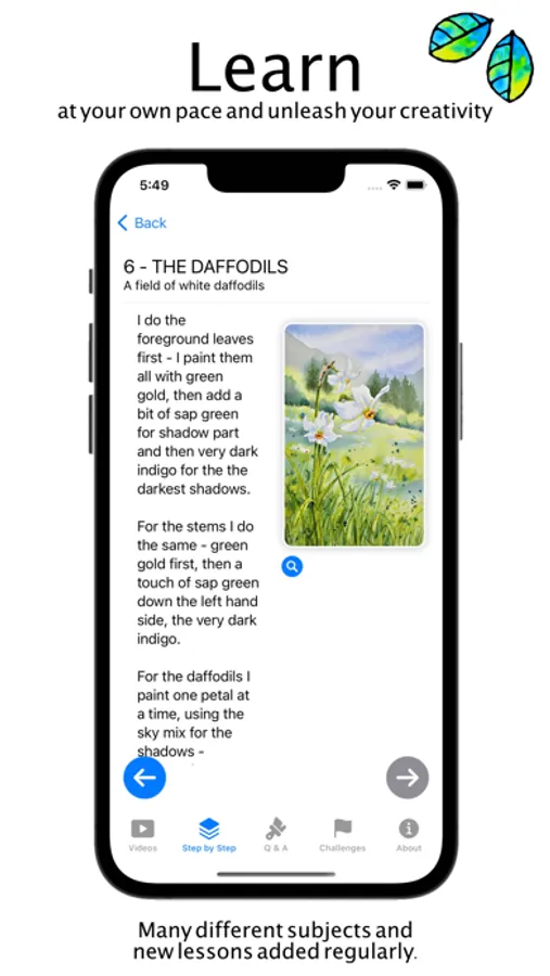 To start you off there are 2 free lessons, a big set of articles answering common questions, and painting challenges. To access all content you can subscribe within the app. Pricing varies by region and will be confirmed before purchase in the app.