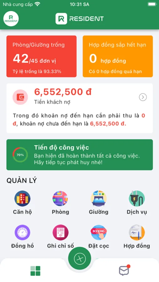 1. Quản lý Căn hộ/Dự án: Resident hỗ trợ quản lý nhiều mô hình cho thuê dài hạn như Nhà trọ, văn phòng, mặt bằng, ký túc xá, homestay,... Bạn có thể quản lý nhiều cơ sở (Căn hộ) ở các địa chỉ khác nhau trong cùng một tài khoản quản lý