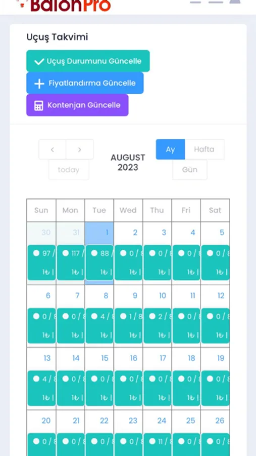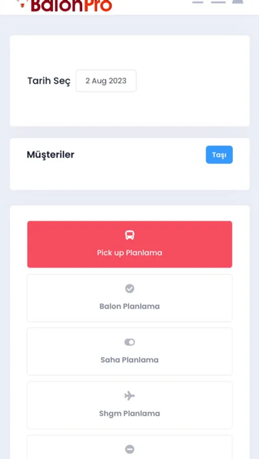Balonpro ile işletmenizi her yerden kontrol edebilir, işletmenize ait tüm verilere rahatlıkla ulaşabilirsiniz. Uçuş rezervasyonlarınızı, günlük uçuşlarınızı, ekstralarınızı ayrı ayrı kayıt altına alabilir; uçuş operasyonlarınıza ait ödeme işlemlerinizi; kasa ve cari hareketlerinizi yönetebilirsiniz.