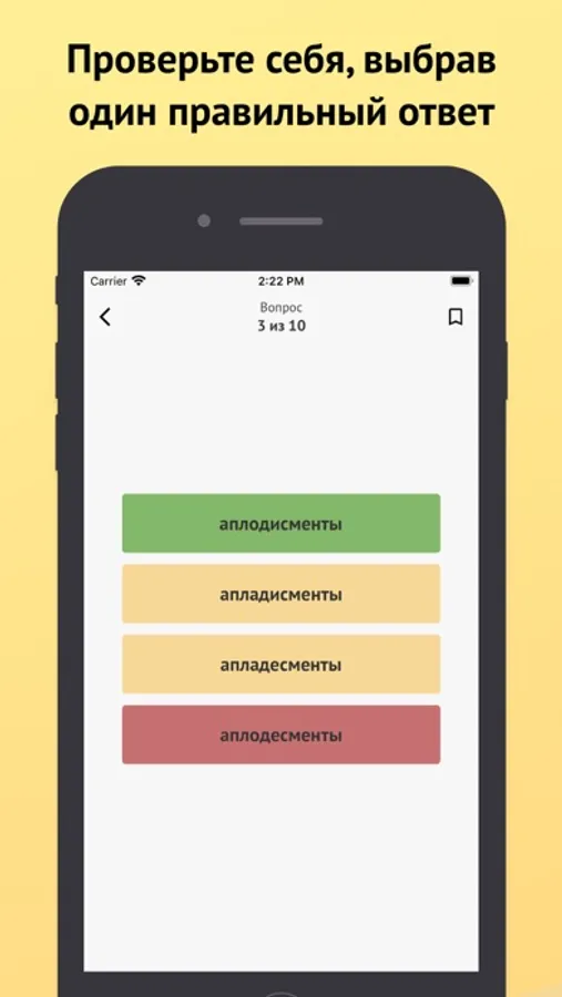 Слова, в которых вы делаете ошибки, будут появляться в последующих тестах для того, чтобы вы наверняка их запомнили.