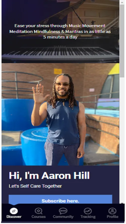 Decrease stress, anxiety, grief, depression, improve sleep and increase overall peace through 5 M's. Music, Movement, Meditation, Mindfulness and Mantras in as little as 5 minutes a day. A 5 part Soulful, Soothing Self Care Experience guided by Musician, Certified Mindfulness & Meditation Teacher and Stretching & Flexibility Coach; Aaron Hill. As a "self care accountability partner" Aaron not only guides you but practices right along side you as your "mental and physical fitness gym buddy" helping you to not feel alone in your process & progress.