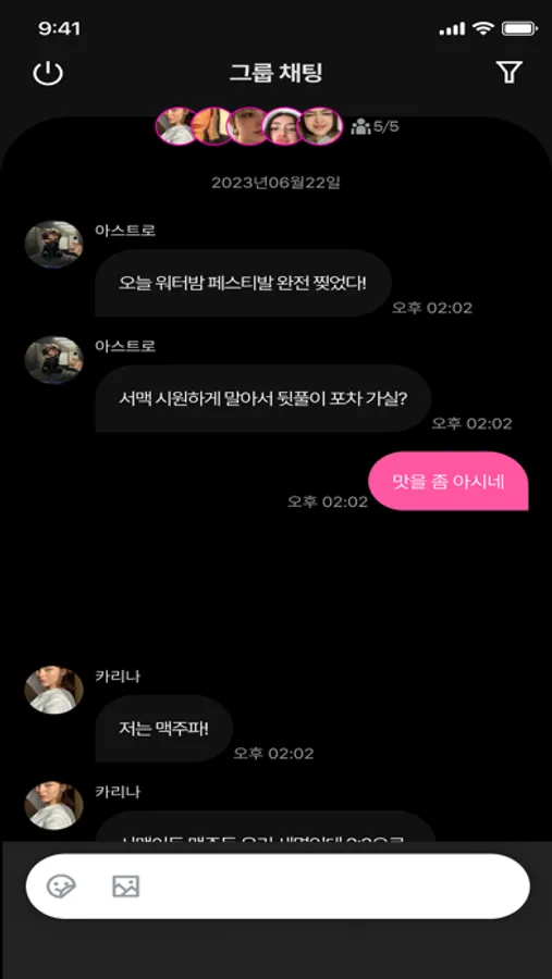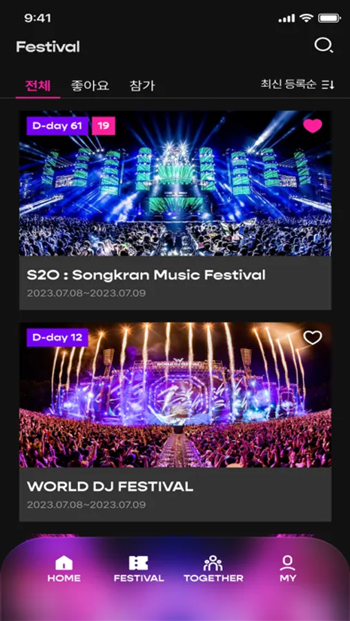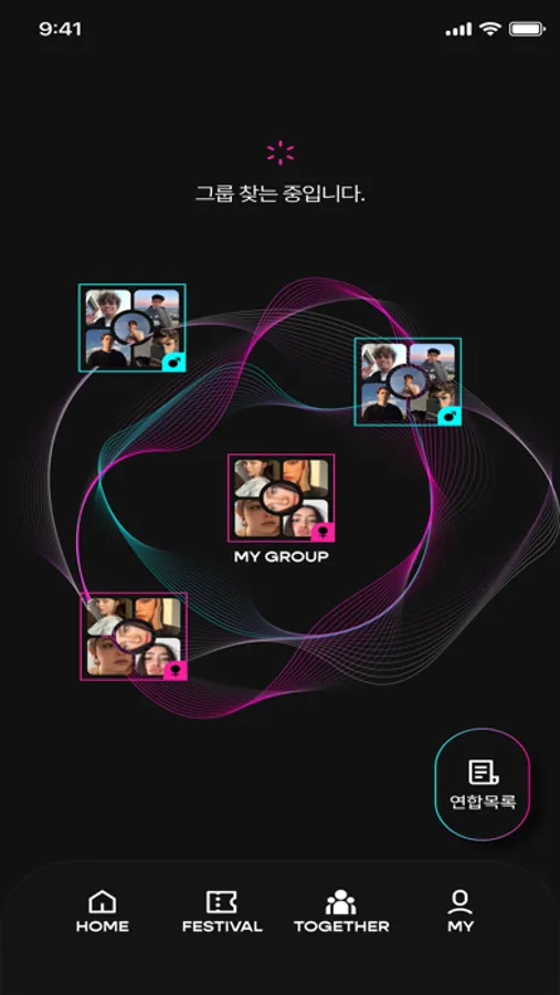- 투게더는 페스티벌 전/후로 함께 신나게 어울릴 수 있는 멤버들과 그룹 채팅을 할 수 있는 기능이에요.