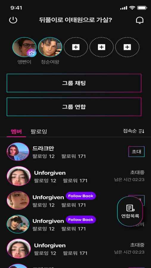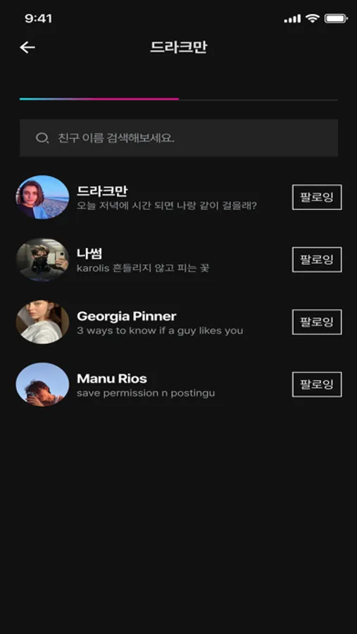 - 팔로우 중인 회원 중 비슷한 관심사를 가진 친구들과 더 즐겁게 이야기해보세요.