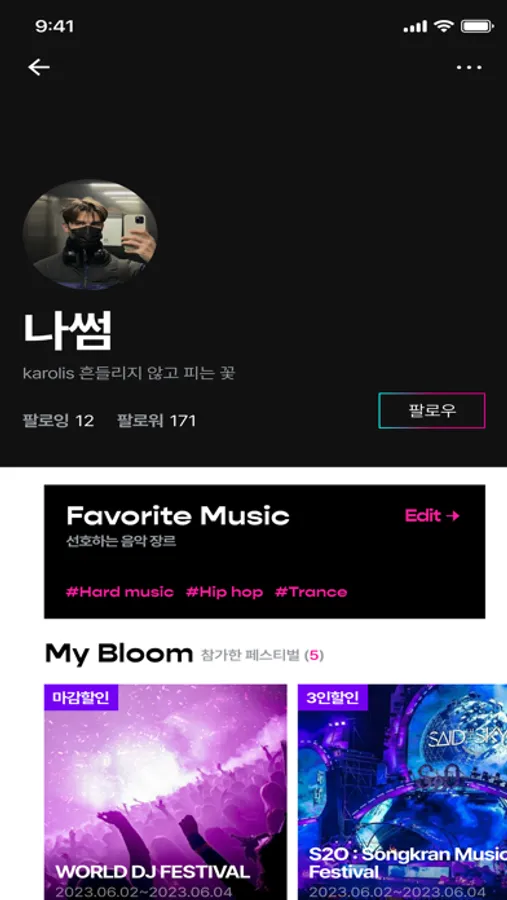 - 성별, 연령대, 선호 음악 장르 등 기본정보와 나를 표현할 수 있는 사진이나 영상을 등록해 보세요.