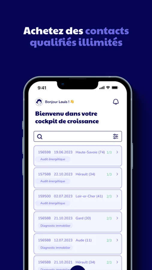 Avec Jaqe, trouvez facilement des contacts de prestations de diagnostic immobilier sur toute la France. Notre application fluide et moderne vous permet d'accéder à une base de données riche en opportunités commerciales, le tout à portée de main.