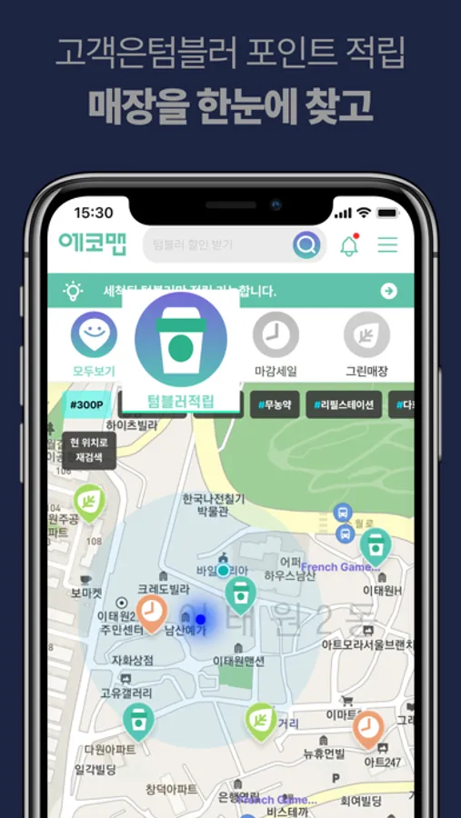 텀블러 사용 시 할인적립 해주는 매장 지도 app