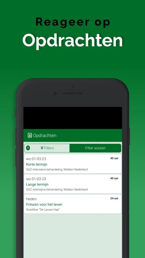 De App is gekoppeld aan het systeem waardoor informatie altijd up-to-date is, via een overzichtelijk dashboard. Bovendien komen belangrijke meldingen, als nieuw beschikbare opdrachten, via een push melding binnen op het apparaat. Zo zie je niets over het hoofd. Ook wijzigingen worden direct zichtbaar, ook in de agenda. Je bent dus altijd op de juiste plaats aanwezig.