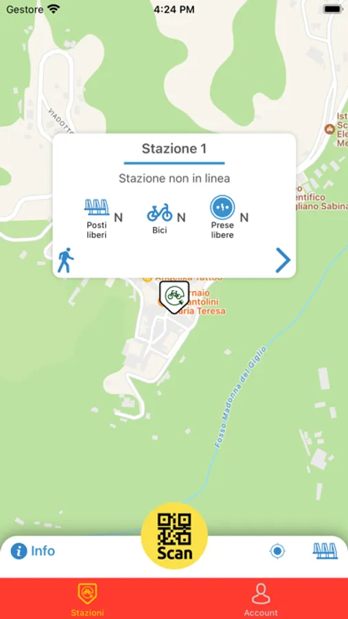 There are currently 2 cycle stations: the first in the upper parking lot of Via delle Fontanelle and the second close to the main square (Piazza Garibali) in Largo Francesco Crispi. There are 9 e-bikes available for hire, 5 of which are Mountain Bikes and 4 city bike.