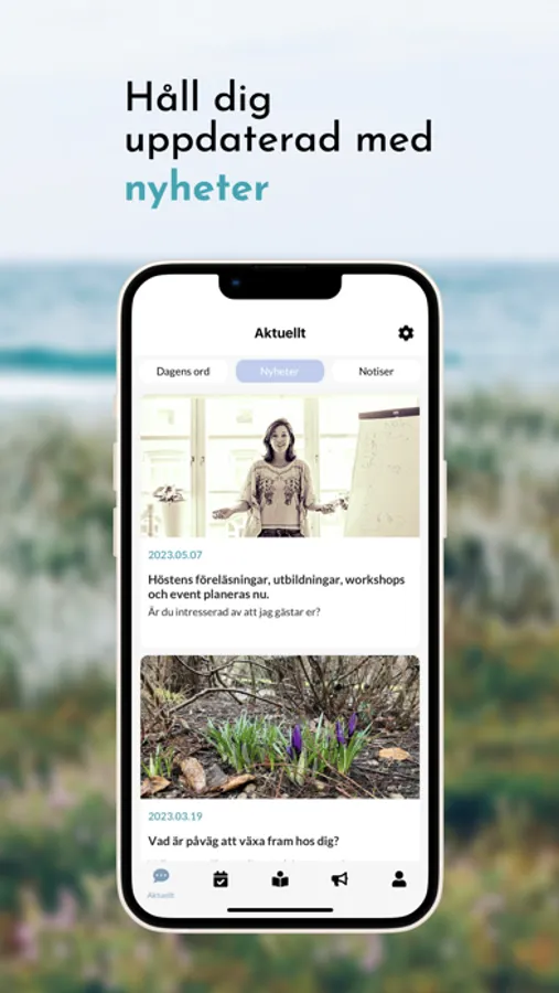 Appen innehåller stöd till din utveckling genom dagens ord, tips på hjälpande böcker, övningar till vardags, aviseringar om event som föreläsningar, kurser och utbildningar.