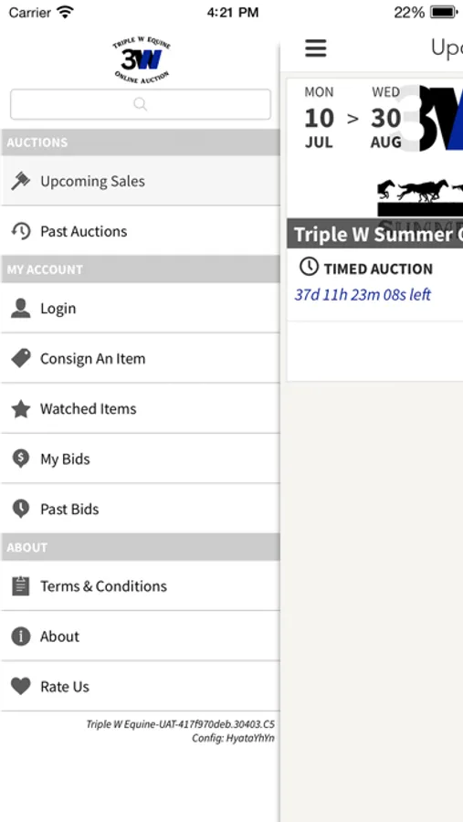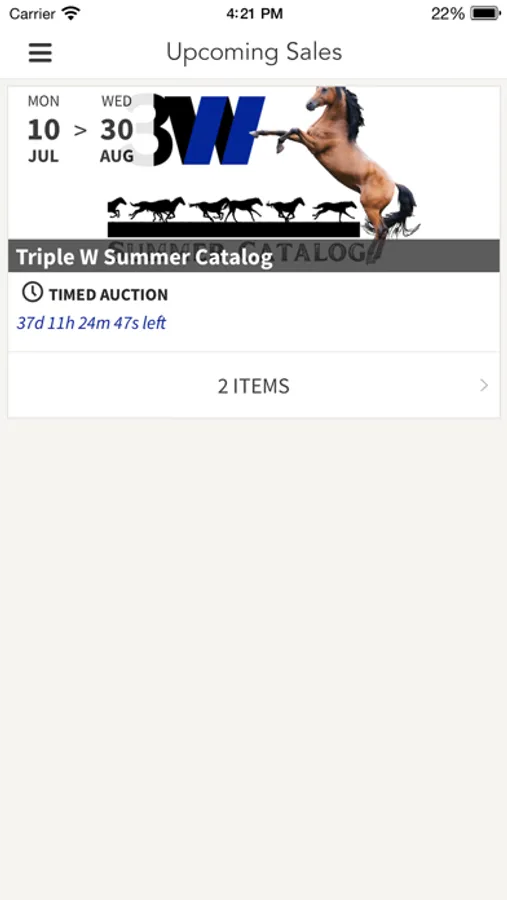 With the Triple W Equine app, you can preview, watch and bid in our auctions from your mobile / tablet device. Participate in our sales while on-the-go and gain access to our following features: