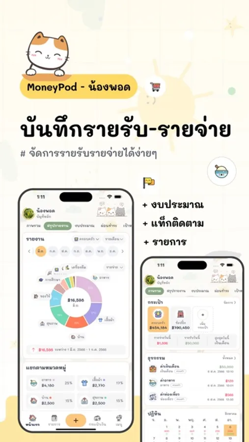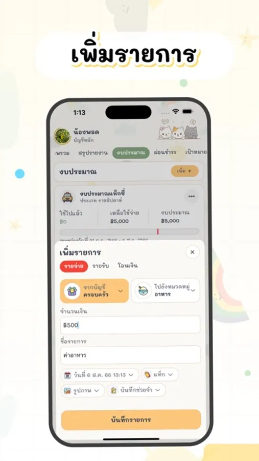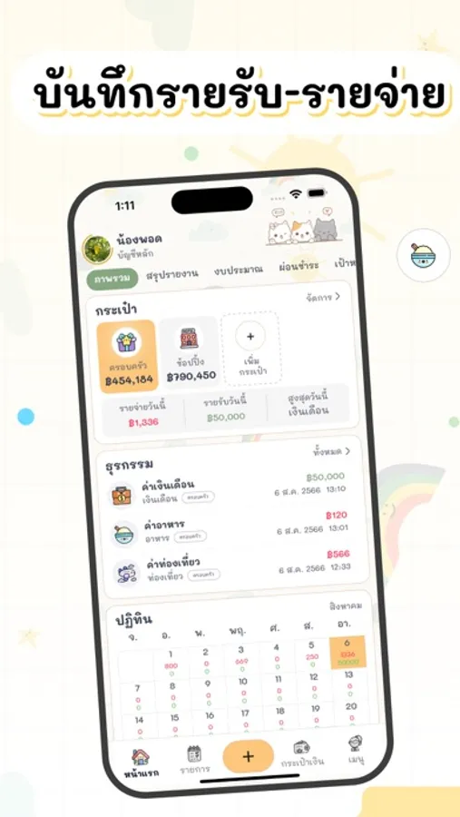 แอพบันทึกรายรับรายจ่าย น่ารัก ที่จะช่วยคุณให้หมดปัญญากับการที่ไม่รู้ว่าเราใช้จ่ายอะไรไปบ้างในแต่ละวัน ไม่รู้ว่าเงินหายไปไหมหมด ด้วยแอพของเราทำให้คุณรู้รายรับรายจ่ายในแต่ละวันได้ พร้อมทั้งฟังก์ชันการใช้งานต่างๆ เช่น