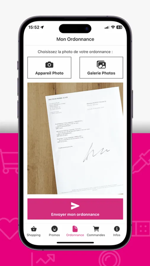 - le dépôt d'ordonnances de votre médecin,