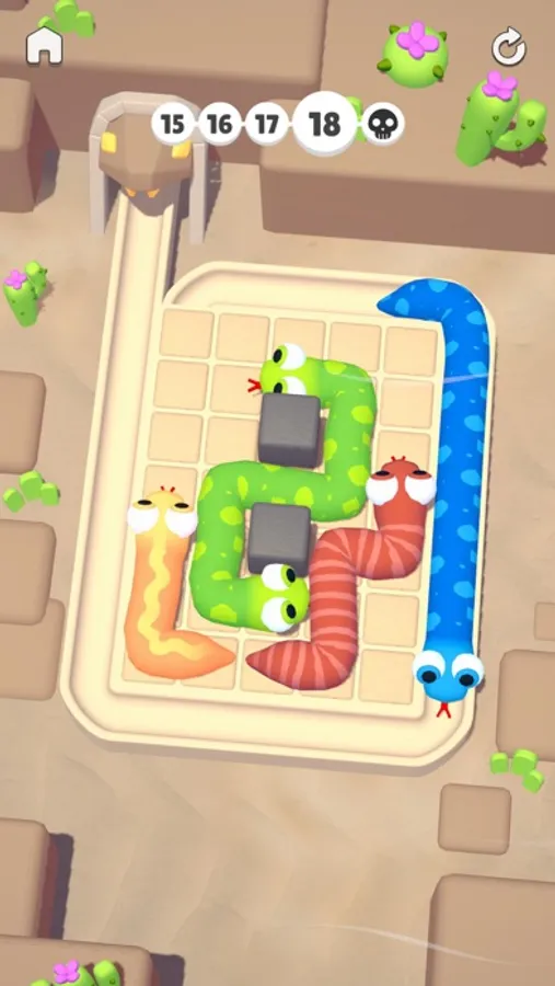 Jams in a board, challenging parking situations, angry snakes and much more. Solve puzzles which get harder each level, choose which snake to move so you can find smooth exits without hitting anything and anyone, complete levels without getting stuck, and more!