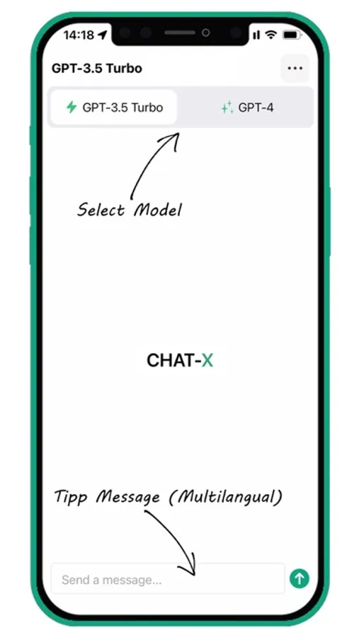 CHAT-X is an AI-based multilingual chatbot that runs on OpenAI's API. The chatbot currently supports the GPT-3.5 Turbo and GPT-4 models.
