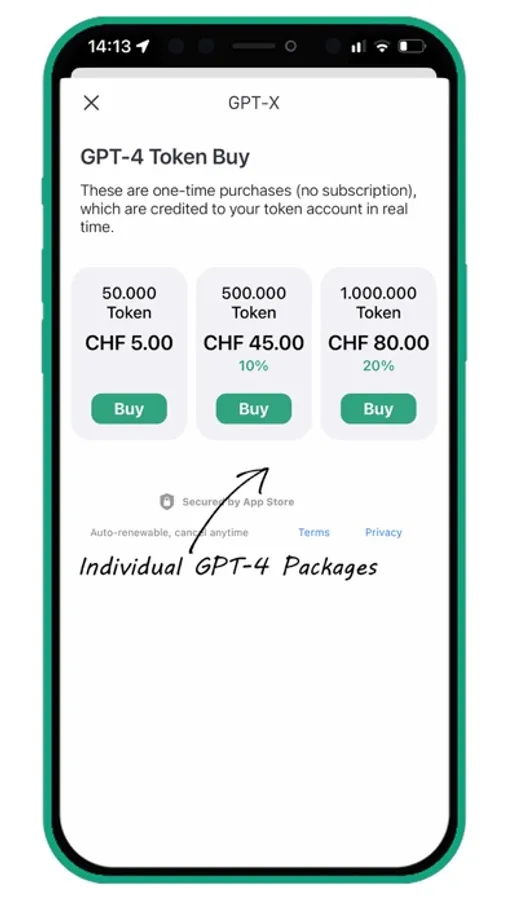 - No subscriptions (GPT-4 token packages can be purchased individually)