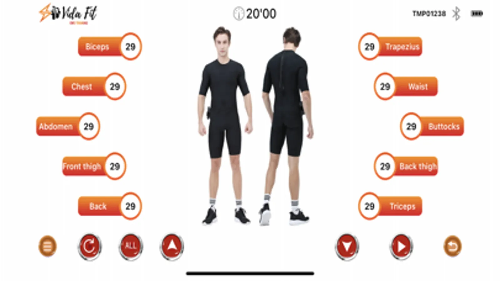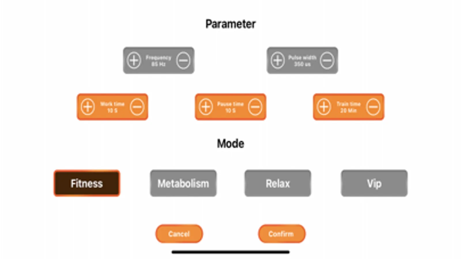 Vida Fit EMS is an application software for fitness exercise. It is simple to register user information, and can quickly connect with the corresponding equipment. It provides control mode guidance and multi-mode selection training, so as to meet the exercise needs of all parts of your body and help you easily exercise at home. Vida Fit EMS is connected to the corresponding device through Bluetooth, which can control the output of the corresponding part of the human body, adjust the intensity, provide multi-mode selection training scheme, and provide the best experience for users