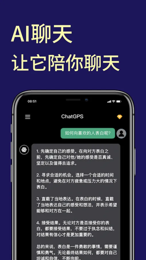 ChatGPS是一款基于先进的人工智能技术且强大的智能ai助手,让您轻松实现与Al的自由对话,帮助你获取信息、知识和创作灵感;它还可以帮助你研究一些复杂的问题,写文章,工作周报,创建代码,提供创意,生成短视频脚本和文案,想出新的食谱等等,可以像人一样理解和写作,是你的贴身小助理,让工作更顺利,生活更便捷。