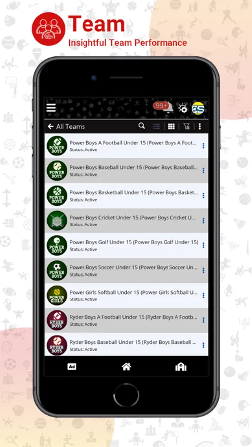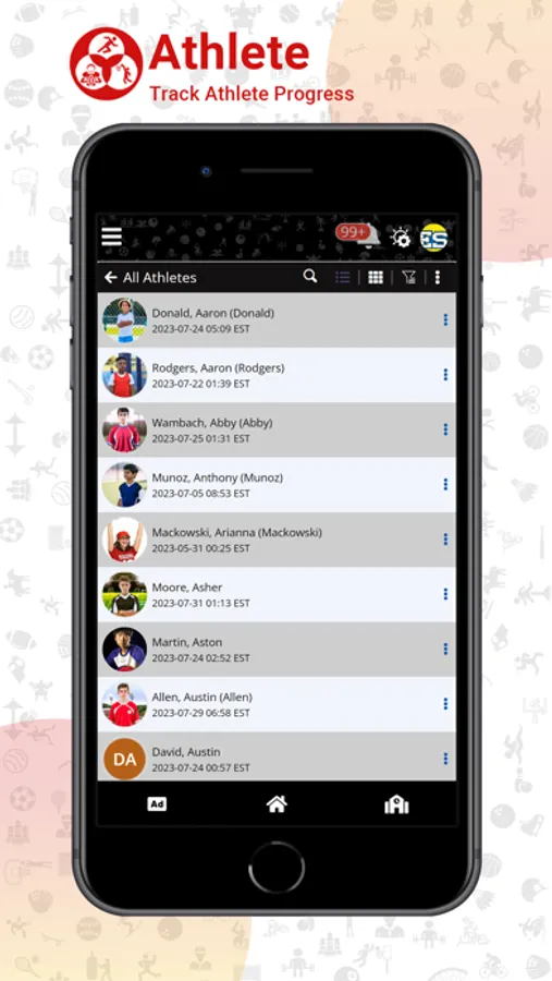 • With in-built messaging and sharing features, communicate with team members, athletes and parents effortlessly.