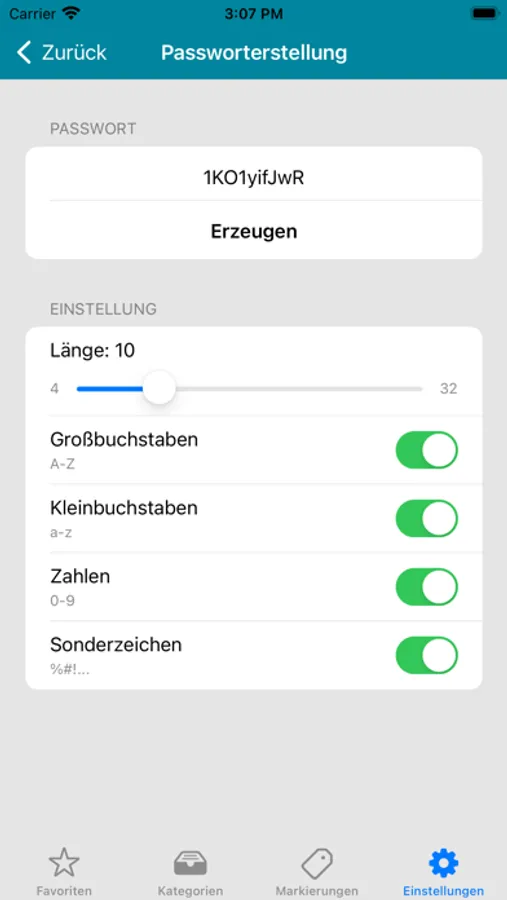 Password database is secured with a master key and an additional application PIN