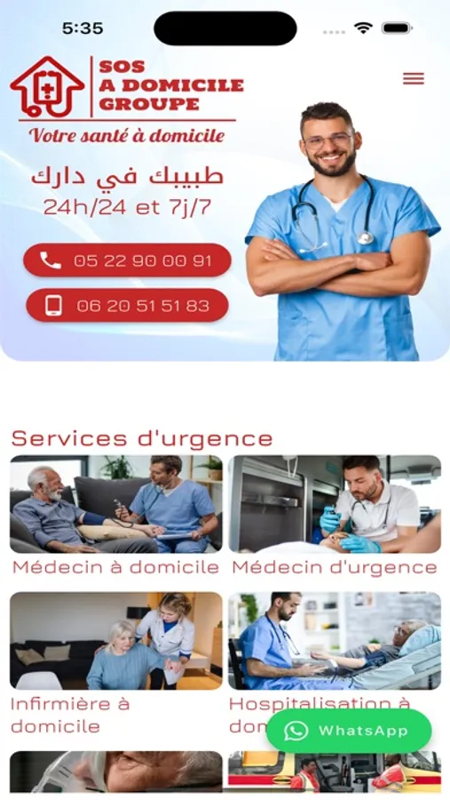 Transformez la santé à domicile avec notre application tout-en-un. Réservez des prestations médicales, de l'infirmière au médecin d'urgence. Envoyez des réservations à notre équipe SOS À DOMICILE pour des soins personnalisés. Besoin urgent ? Utilisez nos appels directs et discutez via WhatsApp avec des professionnels de santé. Simplifiez votre parcours médical dès aujourd'hui.