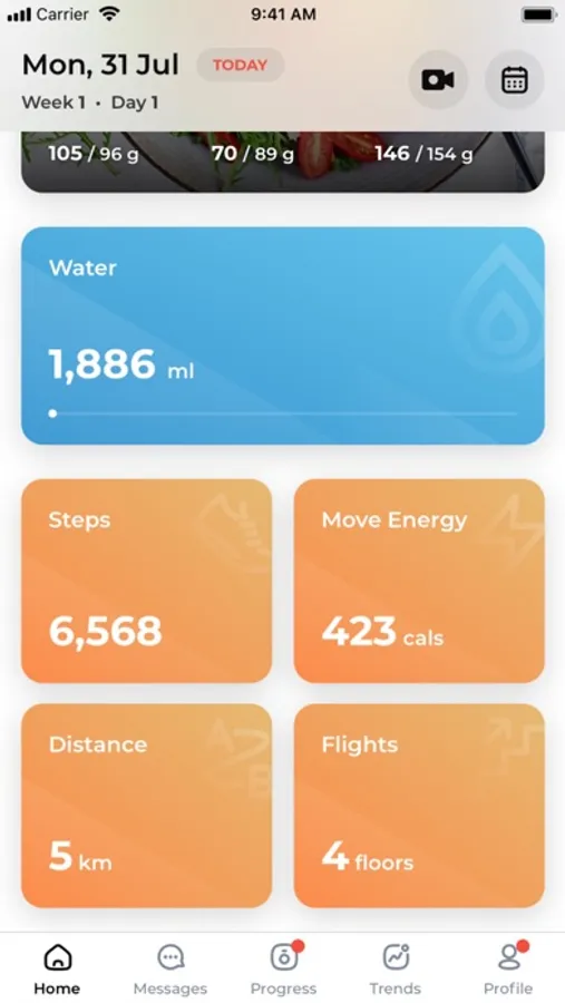 The app integrates with Apple Health to show your daily activity - distance, steps, active energy, and flights to help you better achieve your goals.