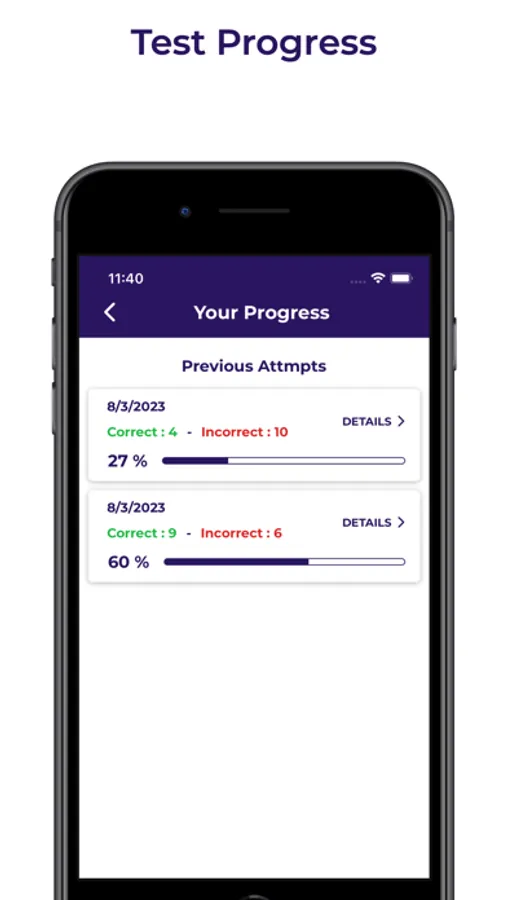 Users can track their progress to focus their studying on the areas. Tracking progress is made effortless as the app allows users to monitor completed practice tests, identify areas requiring more attention, and measure overall improvement.
