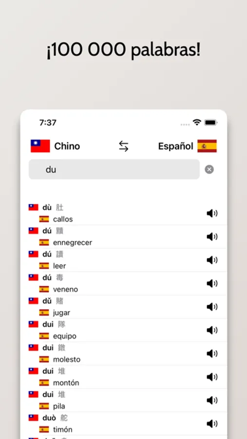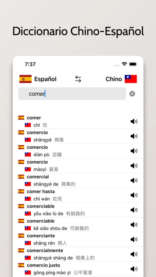 - Posibilidad de buscar a partir de palabras en Español o Chino