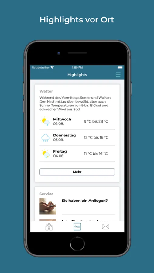 Zudem haben Sie mit unserer App nützliche Adressen und Telefonnummern, Infos zum öffentlichen Nahverkehr sowie aktuelle Wetterprognosen immer auf Ihrem Smartphone mit dabei.