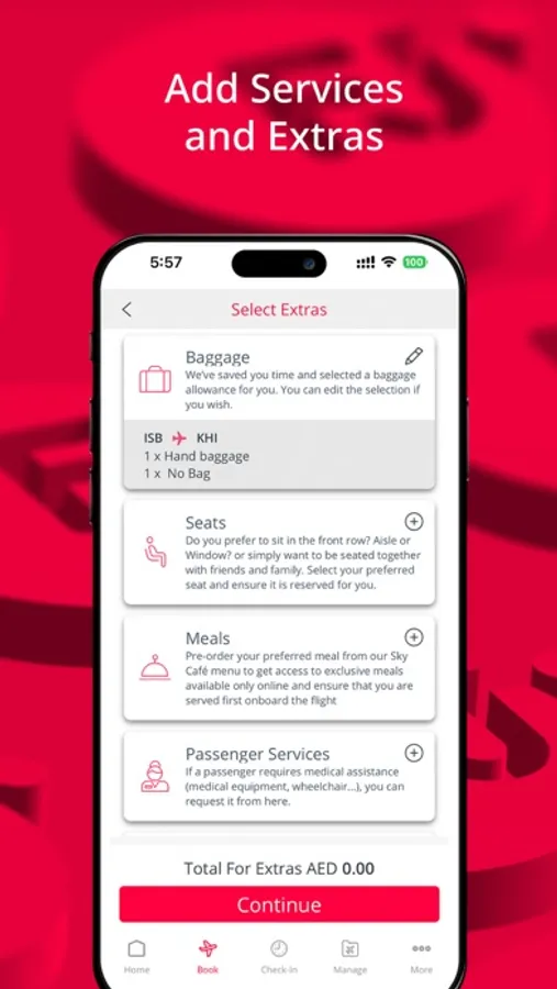 • MANAGE YOUR BOOKINGS: Modify flight dates or enhance your journey with additional options like baggage, preferred seating, special meals, and more.