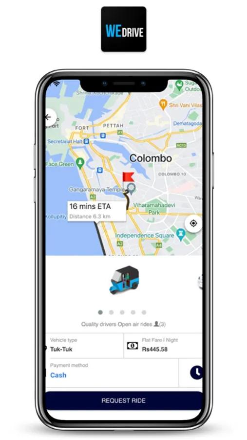 Based in Sri Lanka, WeDrive is a live taxi app that connects passsenger and driver via GPS in real time. Our main objective is to enable customers to fulfill their transportation needs at the lowest prices and allow drivers to earn higher income through this app. Accordingly, our company charges only a fixed commission (WeDrive Pvt Ltd)
