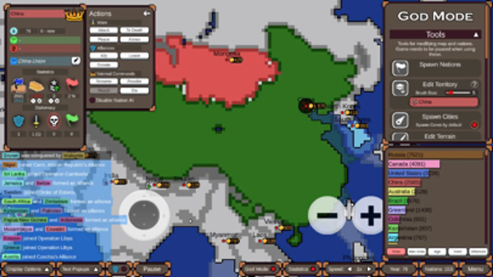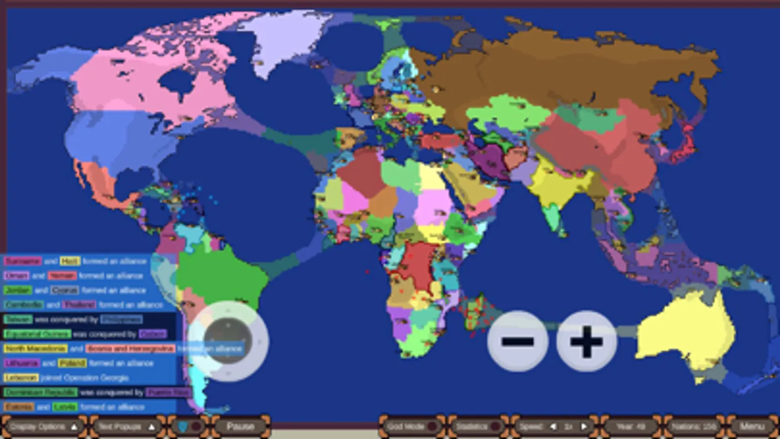 You can affect the world by changing the names of nations, force them to battle, peace, ally or simply collapse with a click of a button!