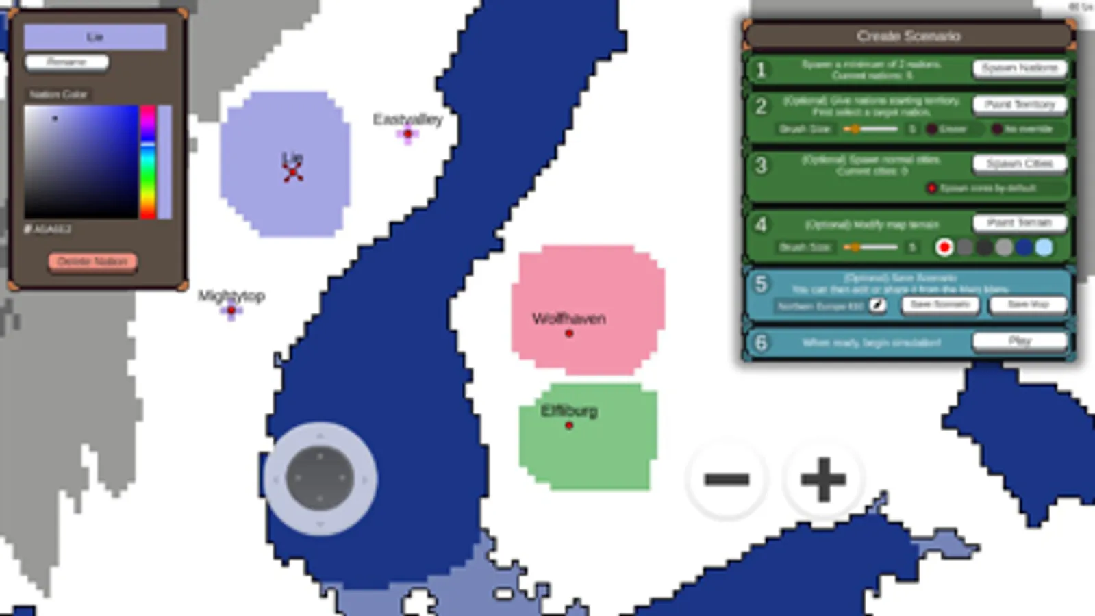 Ages of Conflict is a versatile Map Simulation game where you spawn and observe custom or random AI nations battle it out across an infinite number of worlds. Command nations to nudge the world events into your liking.