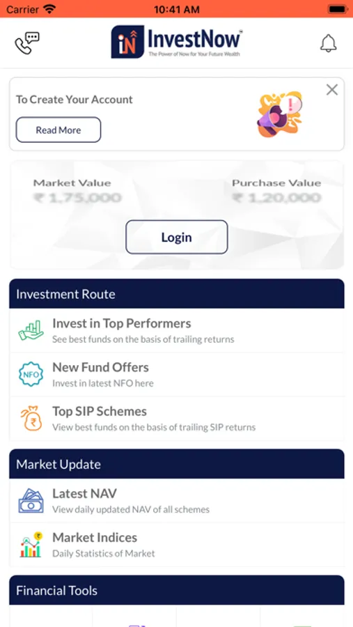 1. **Investment Services**: The app allows users to access a variety of investment assets, including Mutual Funds, Bonds, Fixed Deposits, Portfolio Management Services (PMS), and Insurance. This gives users a centralized platform to monitor and track their investments across different asset classes.