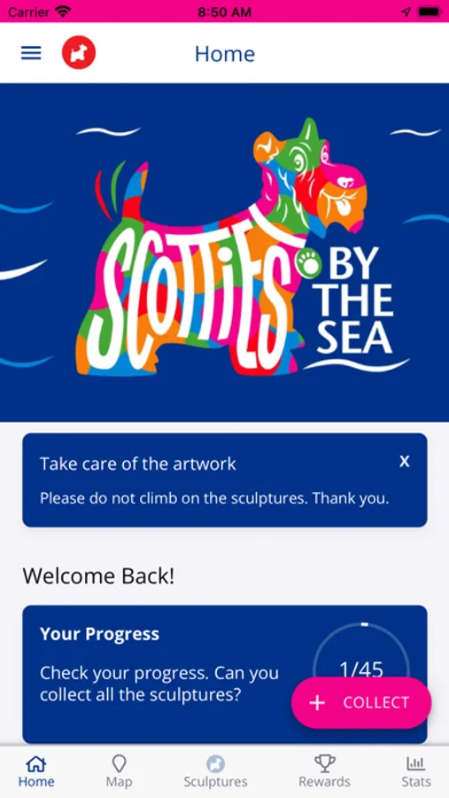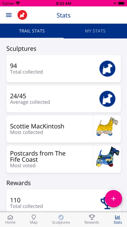 "Discover more than 30 giant Scottie sculptures across St Andrews & The Northeast Fife Coast while unlocking exciting rewards and milestones along the way. Discover the design inspiration and vote for your favourite. Share your trail stats and photos to the sculpture galleries while tracking your steps and miles. Keep up to date with the latest trail related events.