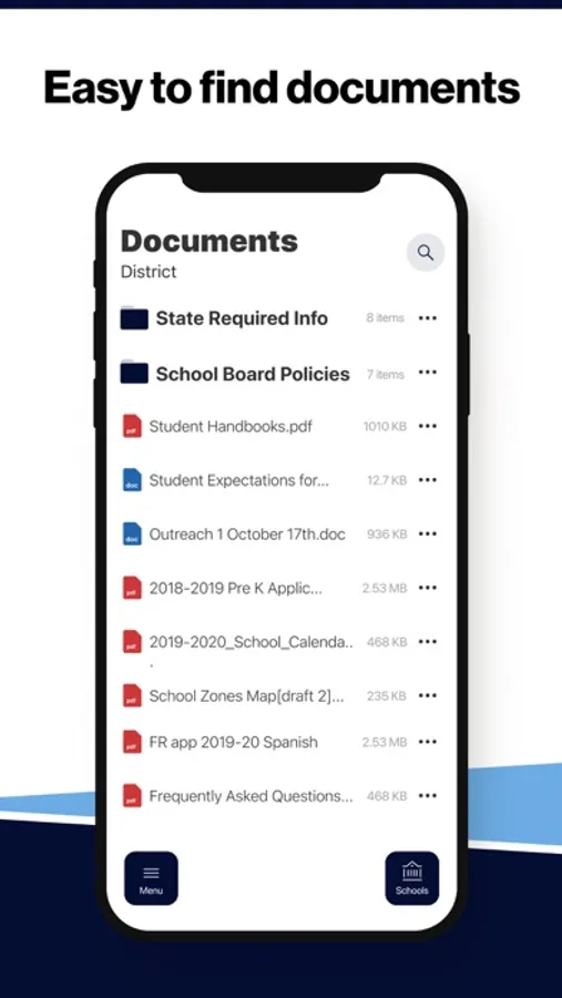The event section shows a list of events throughout the district. Users can add an event to their calendar to share the event with friends and family with one tap.
