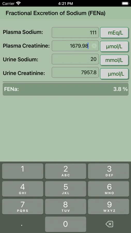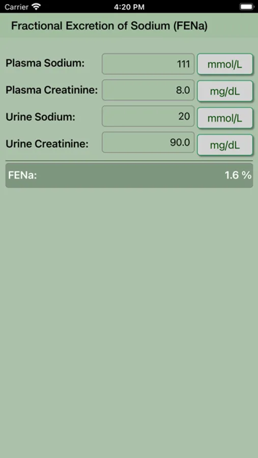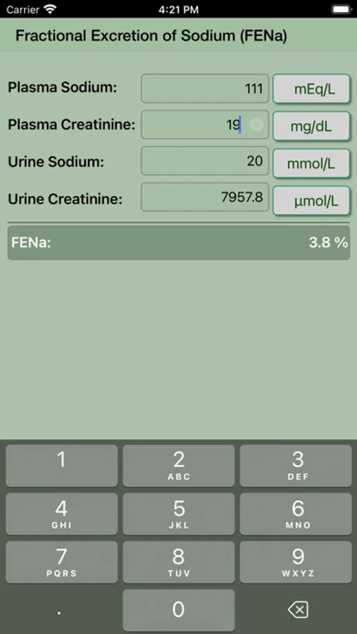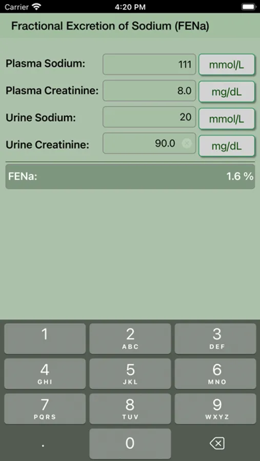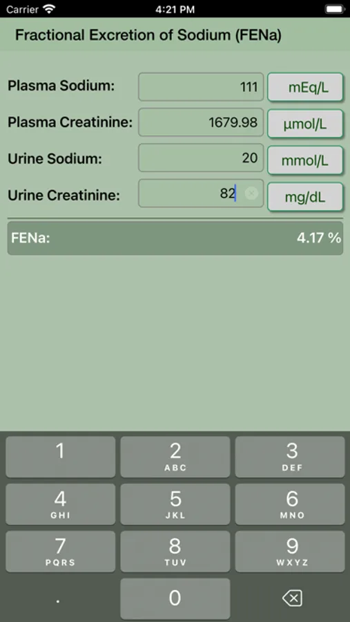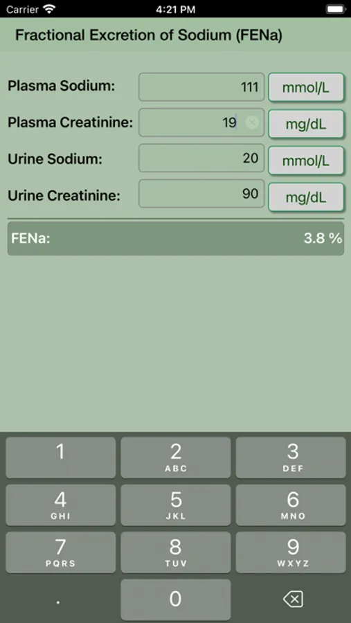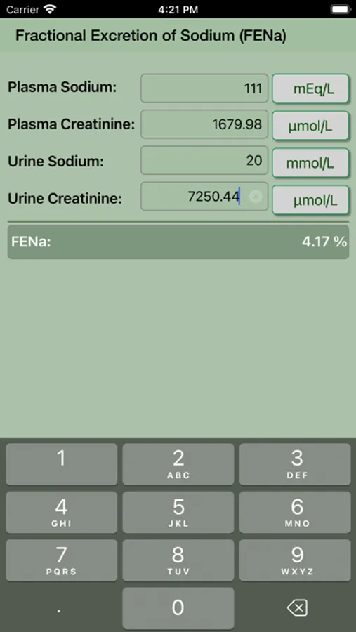 Quick and easy to use FENa calculator. Enter the required data to get FENa percentage result: