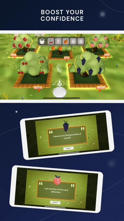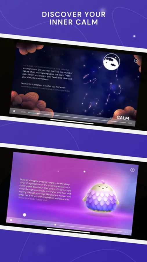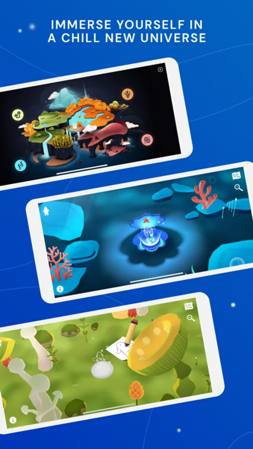 Teleport to four inspiring worlds. The Sea of Serenity is where you can learn meditation through relaxation and breathing. Bright Meadow helps you know yourself better. Inspiration Island encourages you to explore your creativity. And finally, Zen Woods helps you get in touch with your senses.